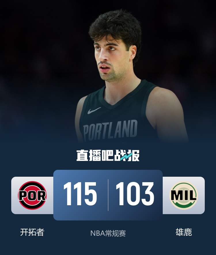一开场,开拓者率先发力,内外开花很快取得两位数领先,雄鹿多点开花迅速追赶,特伦特三分穿针,次节波蒂斯火力全开,里突外投连续拿分率队抹平分差,阿夫迪亚和格兰特联手带队保持优势,开拓者持续发力重新占据场上主动,半场战罢开拓者65-53领先雄鹿,杨瀚森半场没有获得出场机会。下半场,开拓者牢牢占据场上主动,阿夫迪亚再中三分,帮助球队不断扩大优势,末节成为垃圾时间,杨瀚森获得2分钟出场时间,但没太大收获。最终,开拓者115-103轻取雄鹿。