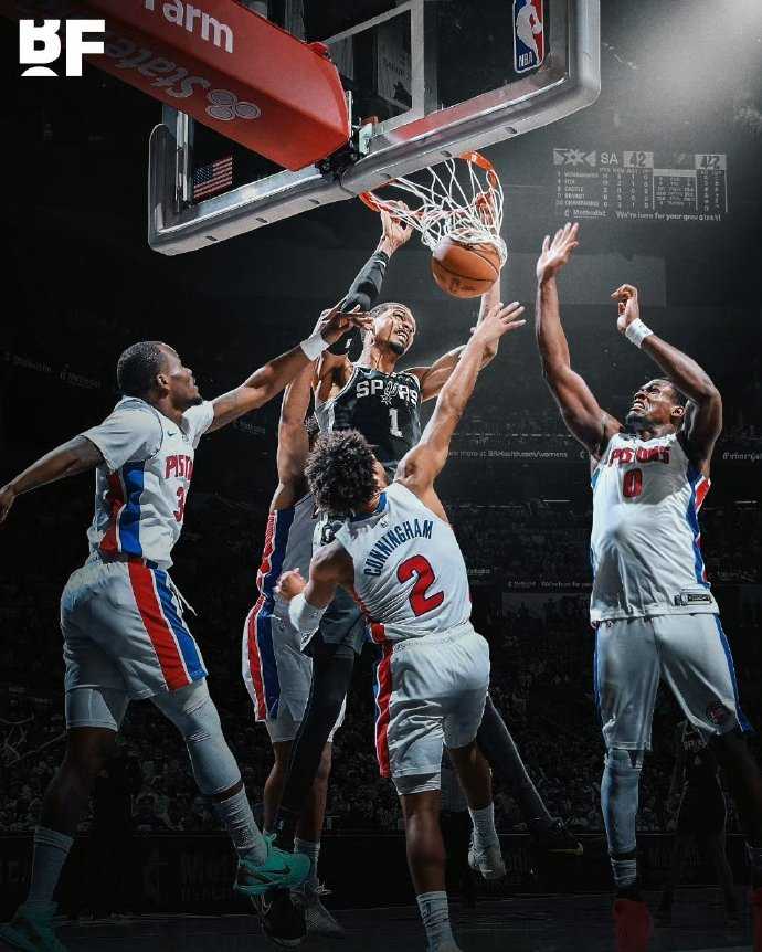 马刺双杀活塞,对东西第一6胜1负!文班38分16板5帽,福克斯29分